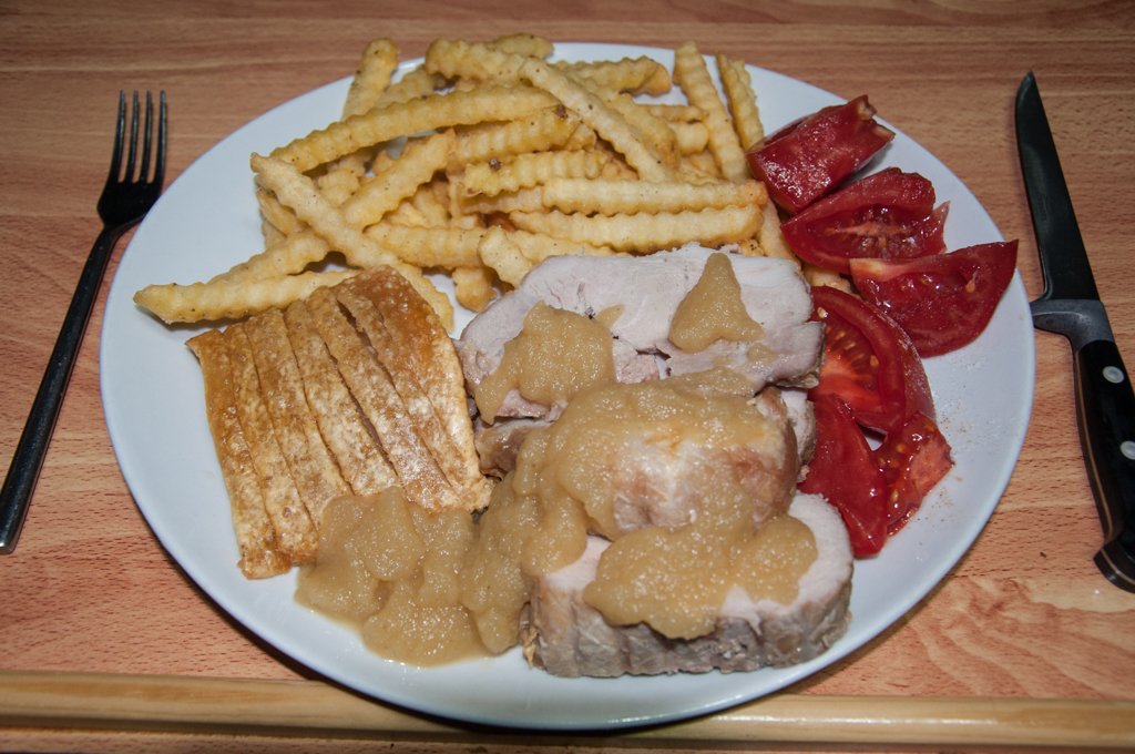 Beef Steak, Roasted Potatoes and Broccoli with a Peppercorn sauce.